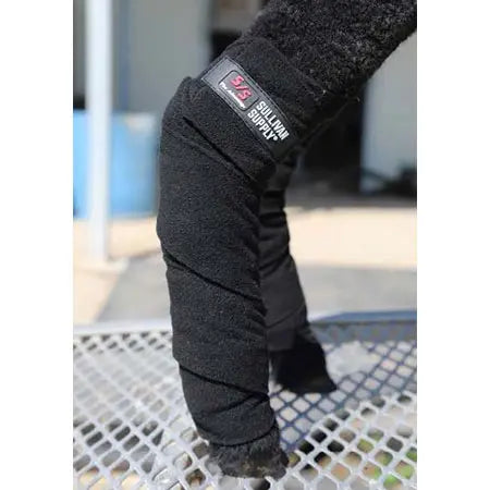 Durable Felt Material Velcro Closure 3” Wide x 6’7” Long The new Sullivan Leg Dress wraps are just what you need to protect the leg wool on lambs and leg hair on goats. The fleece material supports full coverage on the leg with a 3” width that guarantees a smooth wrap, while the velcro closure keeps the wrap securely in place. Sullivan’s Leg Dress comes with four wraps per package. Care Instructions: machine wash, tumble dry on low heat ble dry on low heat